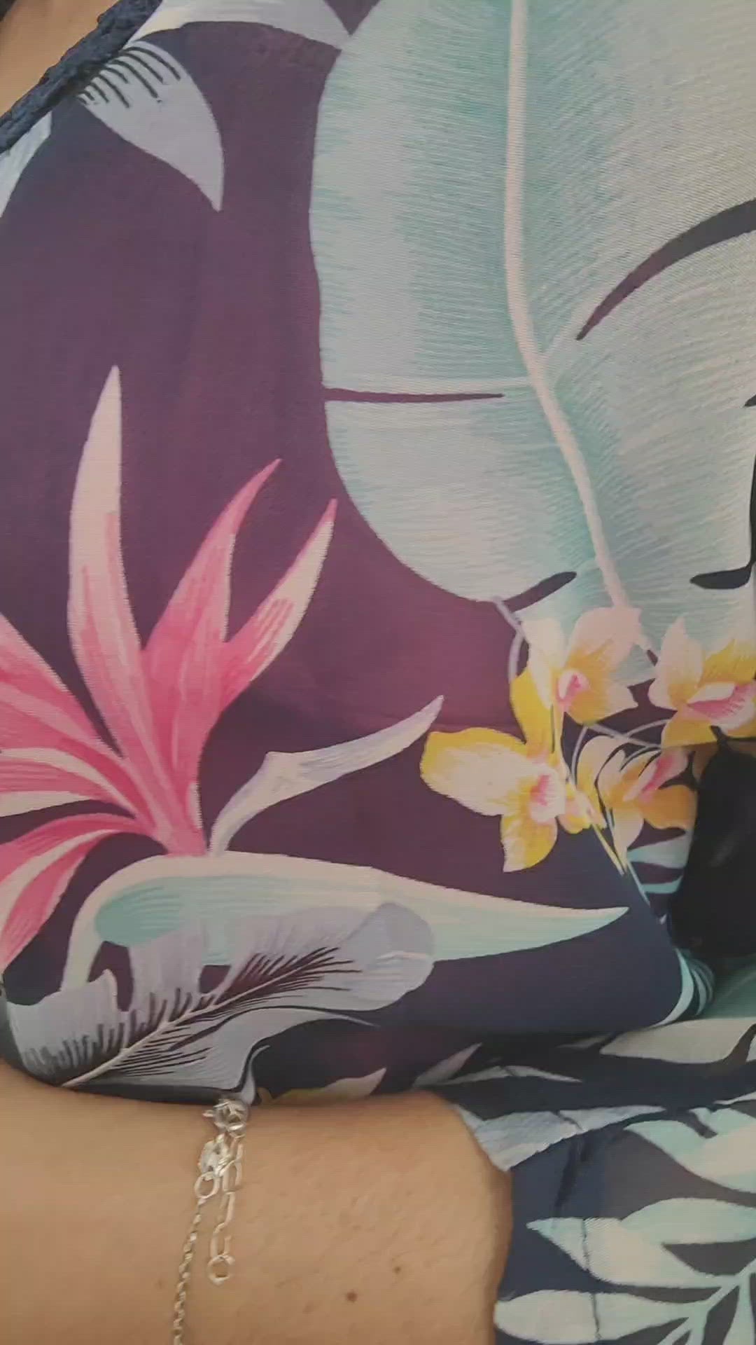 Kimono largo estampado con flores en azul y rosa con detalle del ribete de puntilla y cordón ajustable a la cintura. Manga 3/4. Tela ligera como de gasa.